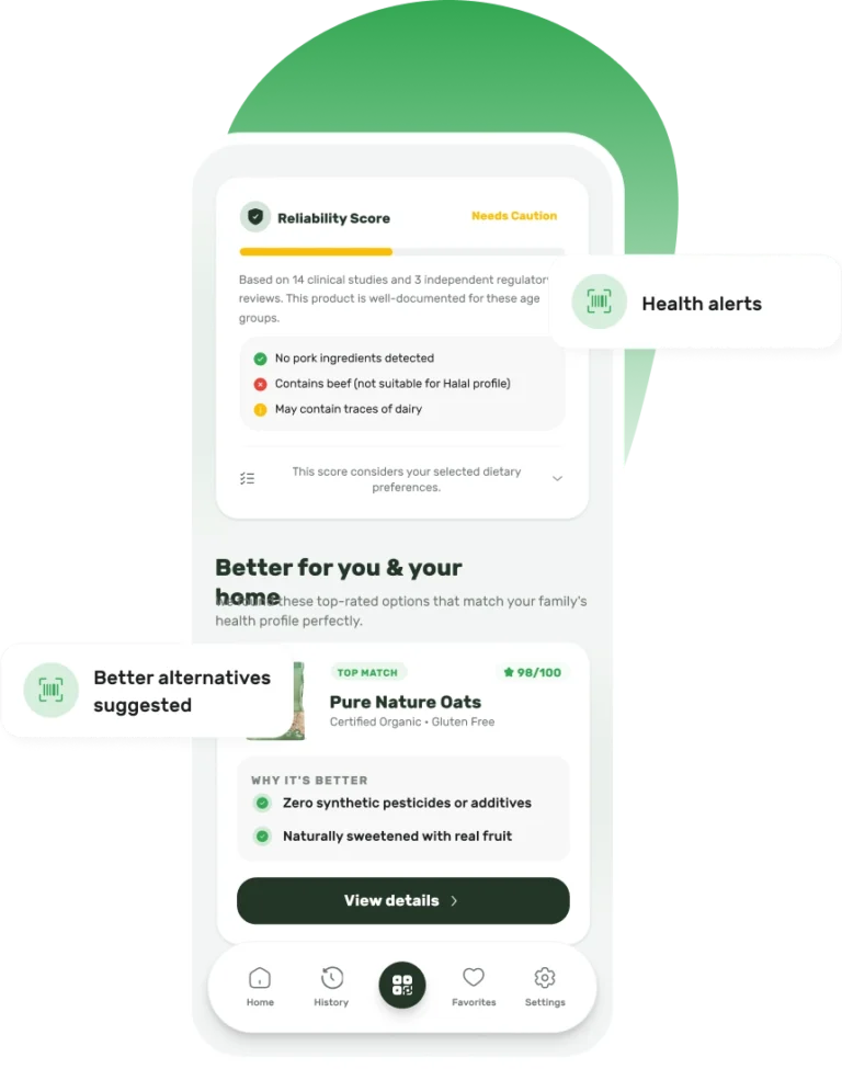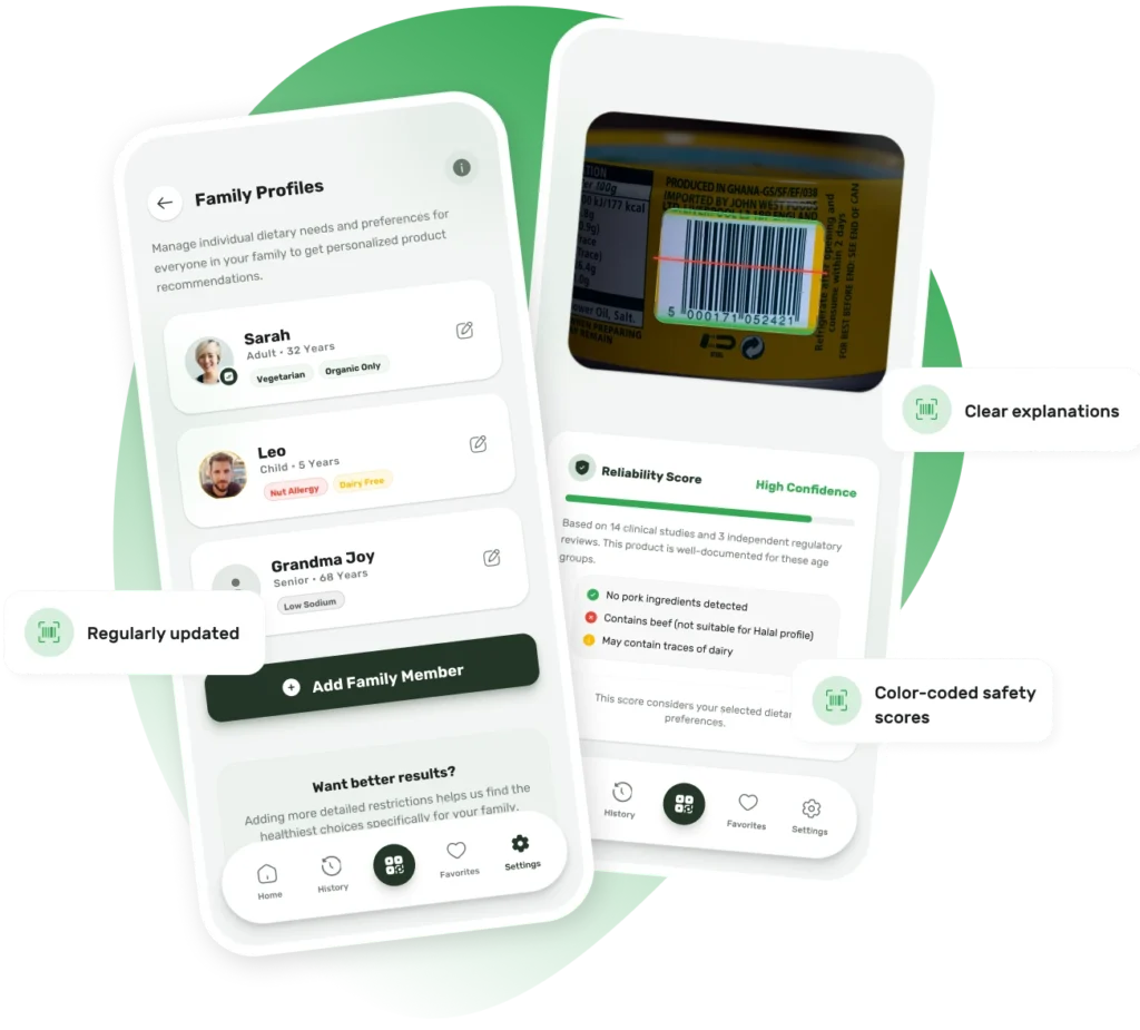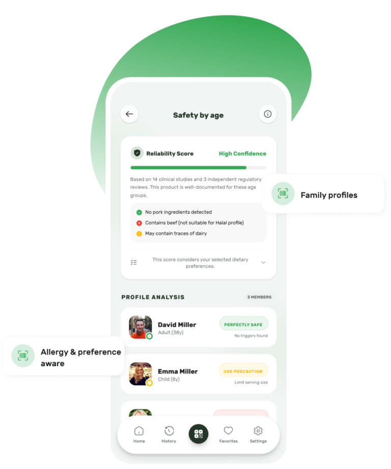 Yes. GoodFor is designed to adapt to your needs, values, and lifestyle, rather than giving one-size-fits-all answers. You can customise GoodFor by setting allergies, intolerances and sensitivities, as well as dietary preferences such as Halal, Kosher, vegetarian or vegan. You can also indicate environmental or ethical priorities that matter to you, so product insights reflect what’s important to your household. These preferences are applied automatically when you scan a product, influencing how ingredients are assessed and how the final score is presented. This means the same product may be scored differently depending on who it’s for — helping you make decisions that are relevant, personal and practical. For families, this is especially useful, as each profile can have its own preferences and needs, ensuring insights are always shown in the right context.